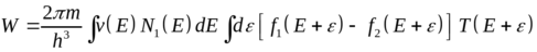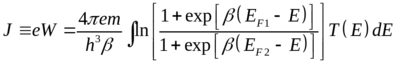 Здесь ЕF1 и EF2 – уровни Ферми в слоях 1 и 2. Когда между слоями приложено напряжение U, эти уровни различаются на eU. После подстановки (Ф1) в (Ф2) получаем формулу Цу-Есаки (Ф3) для плотности тока J.