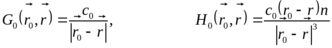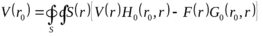Здесь G0(r0,r) – известное (2) фундаментальное решение уравнения Лапласа, зависящее только от расстояния |r0–r | между точками r0 и r, а H0(r0,r)≡ ∂G0(r0,r)/∂n– его нормальная производная в точке r на поверхности S, также известная функция точек r0 и r.