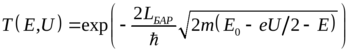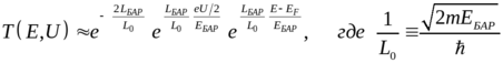В отличие от надбарьерного переноса здесь прозрачность Т(E,U) более плавно зависит от энергии Е (правая кривая Ттун(E, 0 В) на Error: Reference source not found), а также зависит от ширины барьера LБАР (Ф16).