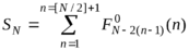 Здесь выражение [N/2] обозначает целую часть числа N/2. Записываем символьную последовательность СР SN. Затем ставим в соответствие каждому числу F0L(n) в сумме (1) отрезок последовательности длиной, равной этому числу F0L(n). Например, согласно формуле (1), S1= F00(1) и S2= F01(1). Но СР S1= А и СР S2= В, поэтому получаем СР F00(1)= А и СР F01(1)= В. Аналогично действуем и для получения остальных треугольных СР F0L(N). Так из разложения S3= F02(1) + F00(2) (в числах оно выглядит как 2=1+1) получаем ВА= В+ А. Отсюда СР F02(1)= В и СР F00(2)= А. Далее, например, из разложения S8= F07(1) + F05(2) + F03(3) + F01(4) (в числах оно выглядит как 21= 1+ 6+ 10+ 4) получаем ВАВВАВАВВАВВАВАВВАВАВ = В + АВВАВА+ ВВАВВАВАВВ+ АВАВ, откуда СР F07(1) = В, СР F05(2) = АВВАВА, СР F03(3)= ВВАВВАВАВВ, СР F01(4)= АВАВ. Преимущество такого способа построения треугольных СР состоит в том, что они наследуют от фибоначчиевых СР их стохастические свойства.