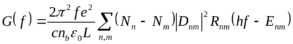 Здесь e – заряд электрона, с – скорость света, h – постоянная Планка, nb= √13 – коэффициент преломления GaAs на терагерцовых частотах, L – длина одного периода ККЛ. Суммирование в (1) ведется по всем парам уровней, для которых энергии En > Em. Энергия перехода En - Em обозначена Enm. Для переходов с энергией E предполагалась традиционная лоренцевская форма спектральной линии Rnm(E) = (Gnm/2π) / [E2+(Gnm/2)2].