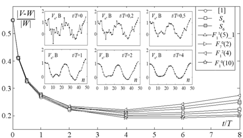 Расчет параметров клеточной нелинейной сети для калибровочного радиосигнала и выбранного зашумленного радиосигнала. Оценка характеристик других параметров, связанных с методом кинетических уравнений. Запуск программы расчета и задание требуемых электрических и геометрических параметров клеточной нелинейной сети. Калибровка программы на примере фильтрации радиосигнала в клеточной нелинейной сети с нелинейным элементом, имеющим эталонную вольтамперную характеристику. Расчет фильтрации выбранного зашумленного радиосигнала. Построение графиков и анализ полученных результатов. (рис. 3-рис. 4).