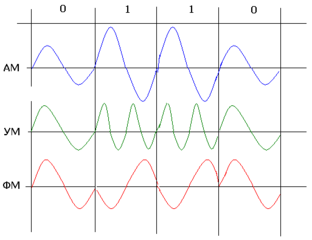 1) на основе синусоидального несущего сигнала, с различными методами модуляции - аналоговая модуляция;