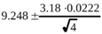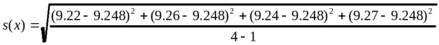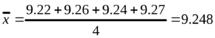 Пример 1. Для серии значений объемов титранта, равных 9.22, 9.26, 9.24 и 9.27 мл, рассчитать среднее и доверительный интервал среднего при P=0.95.