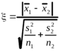 Величины f1 и f2 - числа степеней свободы соответствующих дисперсий, равные n1-1 и n2-1. Критическим значением служит коэффициент Стьюдента t(P,f) для выбранной доверительной вероятности P (обычно 0.95) и числа степеней свободы