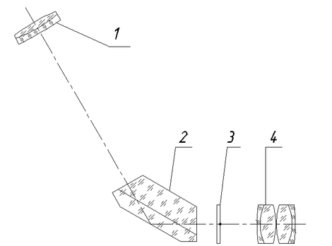 1 – объектив, 2 – призма, 3 – визирная сетка, 4 – окуляр.