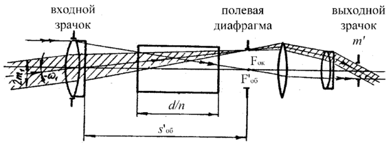 При этом надо иметь ввиду, что наклонный пучок лучей, падающий на окуляр под углом окулярного поля, будет иметь свое удаление -