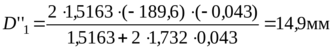 Диаметры D1' и D1'' определяют по формулам (4) и (5), В нашем примере k=1,732, tg2=0,125, tg2=-0,043. Пусть призма будет изготовлена из стекла К8, показатель преломления для основного цвета nD=1,5163 *).