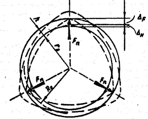 Полная величина упругих деформаций Δупр равна сумме деформации нейтральной оси сечения кольца ΔF и контактных деформаций. Величина последних на порядок меньше ΔF. Поэтому можно записать: