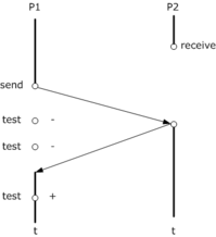 При использовании неблокирующих примитивов, управление возвращается процессу немедленно. Для того, чтобы получить информацию о том, что процесс P1 получил сообщение, процесс P2 должен использовать примитив test, чтобы определить. Вот так: