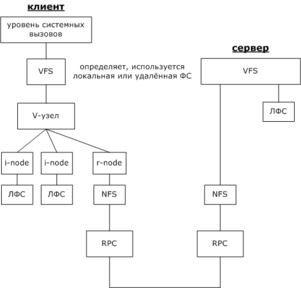 В NFS реализована идея монтирования объектов файловых систем в корневой каталог. Присутствуют два протокола: