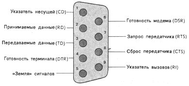 В таблице 1 приведено назначение контактов разъемов COM-прортов (и любой другой аппаратуры DTE). Назначение контактов разъема DB9S (рисунок 3) определено стандартом EIA/TIA-574.