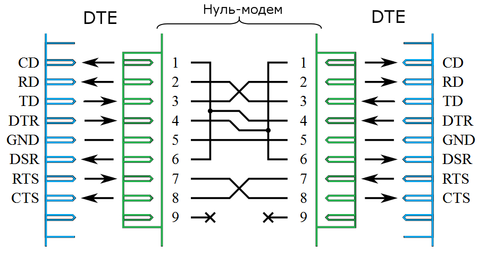 Интерфейс позволяет исключить канал удаленной связи вместе с парой устройств DCE (модемов), соединив устройства непосредственно с помощью нуль-модемного кабеля (рисунок 2).