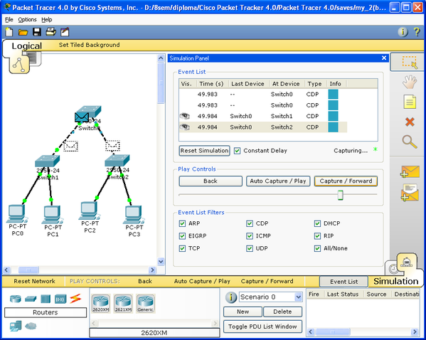 Рис.2. Режим «Симуляции» в Cisco Packet Tracer