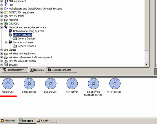 Итак, мы получили сегмент 10BASE-T. После необходимо установить сервер, который устанавливается следующим образом: в окне Device Brouser выбираем иконки в следующей последовательности