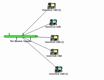 Следующим этапом будет объединение имеющихся рабочих станций в сегмент Thin Ethernet Segment с помощью режима физического соединения устройств (кнопка Link devices):