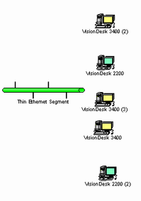 Следующим этапом будет объединение имеющихся рабочих станций в сегмент Thin Ethernet Segment с помощью режима физического соединения устройств (кнопка Link devices):