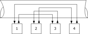 Маркерная шина, максимальная производительность 2.5 Мбит/сек. Коаксиальный кабель RG-58.