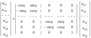 Легко убедиться, что это равенство соответствует уравнениям, связывающим перемещения в локальной и глобальной системах осей координат: