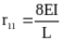 Как известно, каждый столбец матрицы жесткости элемента представляет собой усилия, действующие на элемент в узлах при единичном смещении по направлению какой-либо степени свободы. Поэтому, для построения любого столбца матрицы жесткости элемента следует задать единичное смещение по направлению соответствующей степени свободы элемента и найти усилия, действующие при этом на его узлы. Выполнив последовательно эту операцию для всех степеней свободы элемента, по столбцам построим всю матрицу жесткости элемента.