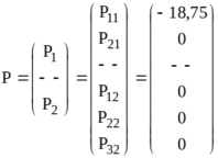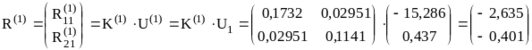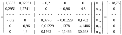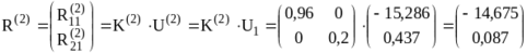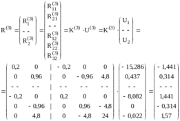 Далее, необходимо определить усилия, действующие на каждый элементы системы со стороны узлов, для чего воспользуемся формулой (2):
