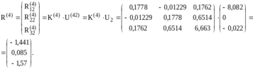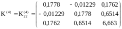 Перейдем теперь к решению задачи 2. Узловая нагрузка определяется как реакции во введенных связях в задаче 1, взятые с обратным знаком. В нашем случае в качестве нагрузки будет фигурировать только горизонтальное усилие в узле 1 (рис.35). Следовательно, вектор внешней нагрузки Р будет следующим:Теперь построим матрицы жесткости всех элементов системы. Вопрос построения матриц жесткости был подробно рассмотрен выше, поэтому здесь приведем только построенные матрицы жесткости в глобальной системе координат3: