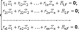 называются побочными, а свободные члены R1F, R2F, …, RnF — грузовыми реакциями. В этих уравнениях, так же как и в уравнениях метода сил, коэффициенты при неизвестных, расположенные симметрично относительно главной диагонали, равны друг другу: