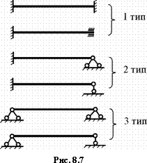 Наложение связей повышает степень статической неопределимости сооружения, т.е. с позиций метода сил усложняет его расчет. Однако такой способ выбора основной системы позволяет представить любую, в частности плоскую стержневую систему, в виде набора стандартных стержней трех типов (рис. 8.7). На любое воздействие (силовое, температурное, кинематическое) каждый из этих произвольно ориентированных на плоскости стержней может быть рассчитан, например, методом сил.