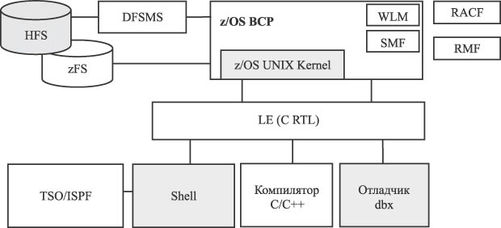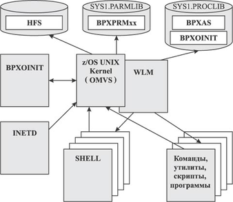 Рис. 5.23. Компоненты z/OS UNIX