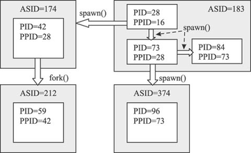 Каждый процесс имеет уникальный идентификатор PID и может по своей инициативе порождать новые (дочерние) процессы с помощью системных вызовов fork() и spawn(). Таким образом, у каждого процесса (кроме одного, самого первого) существует родительский процесс, связь с которым поддерживается благодаря еще одному атрибуту процесса PPID - идентификатору родительского процесса.