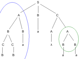 Кроме общего дерева вывода можно рассматривать частичное дерево вывода из некоторого нетерминала цепочки в объединённом алфавите -