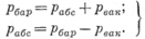 Теперь наружное давление рбар будет уравновешиваться давлением внутри сосуда рабс и разрежением рвак , создаваемым столбом жидкости высотой Н. Таким образом,