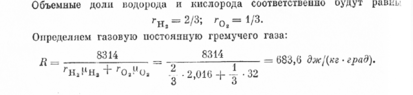 Пример 2. Смесь двух объемов водорода и одного объема кислорода называют гремучим газом. Определить газовую постоянную гремучего газа.