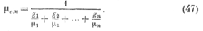 б) если смесь задана массовыми долями, то, принимая во внимание соотношение между объемными и массовыми долями [выражения (42) и (43)], можно записать, что