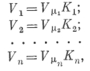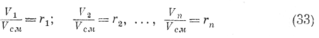 Рассмотрим способ определения состава смеси через числа киломолей компонентов. Пусть смесь состоит из п газов; тогда приведенные объемы каждого из них можно выразить числом киломолей, т. е.