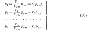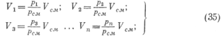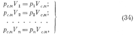 Поясним уравнения (35). Пусть, для простоты, смесь состоит из двух газов. Объем смеси VCM, давление рсм, температура ТСм.