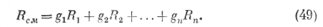 Возьмем такое число RCM, которое при умножении отдельных компонентов на сумму масс m1 + т2 + … + тп дает произведение, численно равное выражению в скобках правой части уравнения (37). Введенное на основе формальных соображений в уравнение (38) число Rc „ можно назвать газовой постоянной смеси.