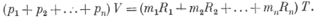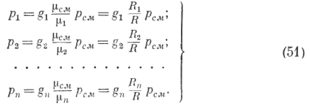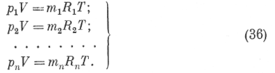 В этих уравнениях R1, R2 ... Rn — газовые постоянные отдельных газов. Просуммировав уравнения (36), получаем