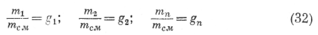 В этих отношениях те т1 ,т2...тп — массы отдельных газов, входящих в смесь;