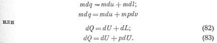 Уравнения (80) и (81) являются уравнениями первого закона термодинамики для 1 кг рабочего тела. Для произвольного количества т кг они принимают следующий вид: