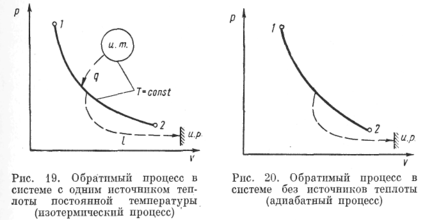 тела остается постоянной и равной температуре источника (рис. 19). Такой процесс называется изотермическим. Все остальные процессы в этой системе могут протекать только с нарушением термического равновесия в ней, т. е. необратимо.