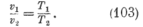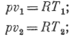 В координатах р — v он представится прямой, параллельной оси абсцисс (рис. 23). Связь между удельными объемами и температурами определится из уравнений