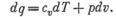 Уравнение первого закона термодинамики для бесконечно малого участка процесса: