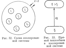 1. Система состоит из двух тел с разными температурами; между телами происходит прямой теплообмен (рис. 33).