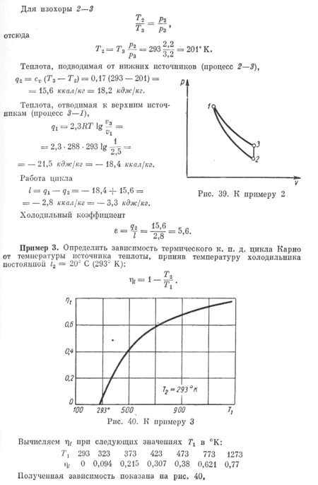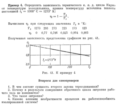 Пример 4. Определить зависимость термического к.п.д. цикла Карно от температуры холодильника, приняв температуру источника теплоты постоянной t1=1000оС = 1273 К :