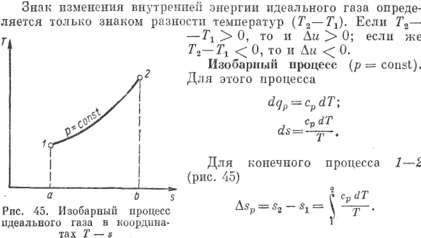 Изобарный процесс, так же как и изохорный, в координатах Т—s представляется логарифмической кривой. Площадь под линией процесса а12b соответствует теплоте в процессе