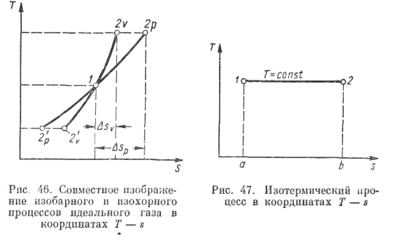 Координаты Т—s с нанесенными на них графиками простейших процессов для данного рабочего тела называют диаграммой T—s этого тела. Простейшей тепловой диаграммой будет диаграмма для идеального газа. Для построения этих диаграмм необходимо рассмотреть основные процессы идеального газа в координатах Т—s.