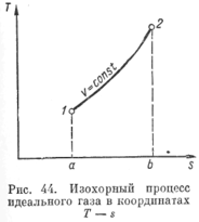 Изохора в координатах Т—s представляется логарифмической кривой 1—2. Площадь под линией процесса а12b соответствует теплоте в процессе