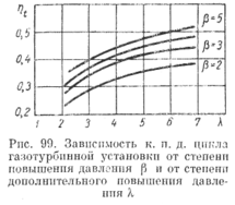 Тогда к. п. д. цикла можно выразить через степень повышения давления: