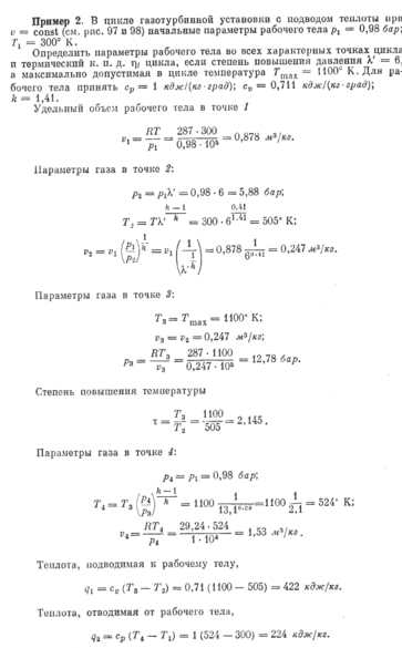 Пример2. В цикле газотурбинной установки с подводом теплоты при v=const (рис 97 и 98) начальные параметры рабочего тела р1=0.98 бар; Т1=300К.